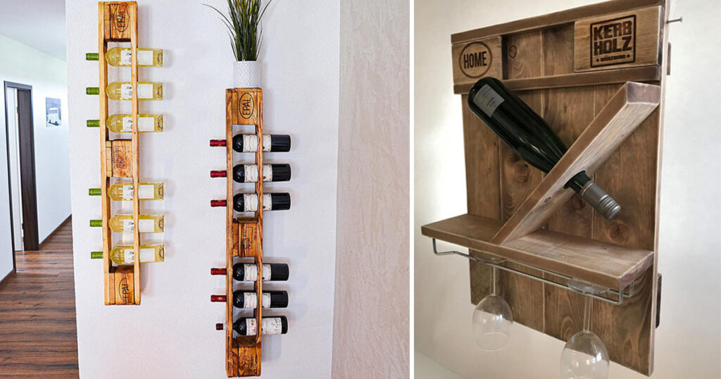 9 portabottiglie da parete originali realizzati con i pallet