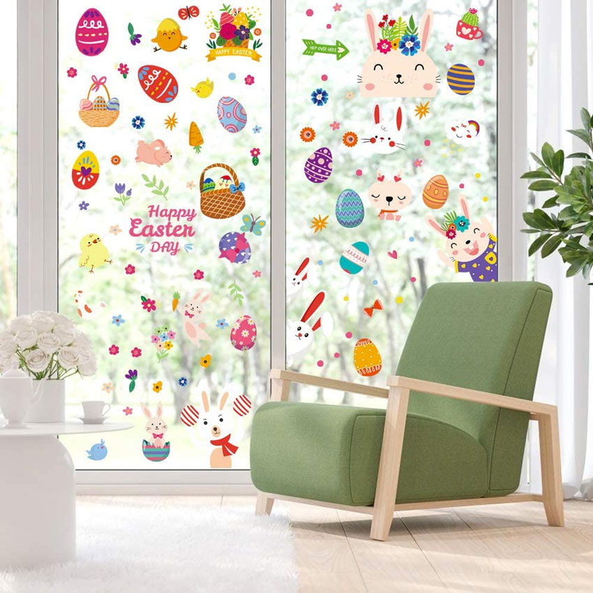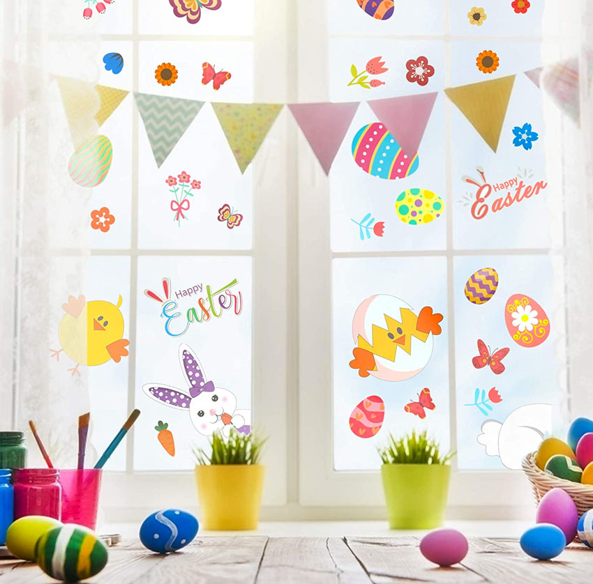 La Pasqua arriva con tutte le sue decorazioni più avvenenti! Colori sgargianti e personaggi fantasiosi, negli adesivi che abbelliscono le finestre con divertimento!