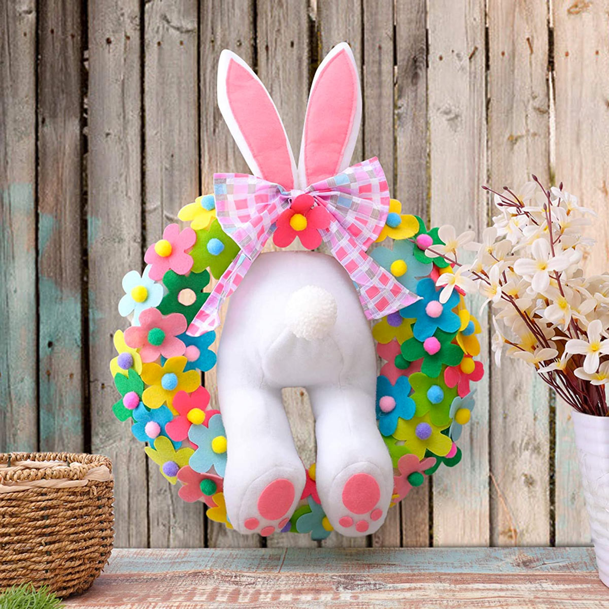 Ravvivate la casa con le decorazioni di Pasqua più bizzarre, come questa corona dentro alla quale vi è il coniglietto che mostra la sua parte anteriore: che idea spiritosa!