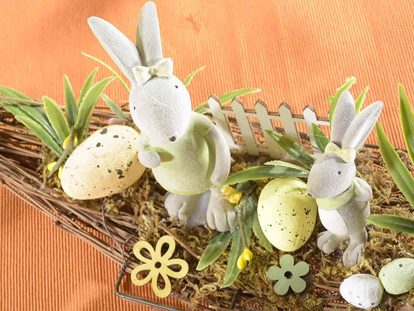 Sulla tavola di Pasqua non può mancare un centrotavola magnificamente primaverile! Eccolo, con gli ovetti e i coniglietti, che piacerà anche ai bambini.