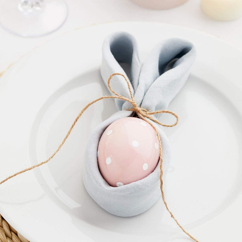 Il segnaposto che non t’aspetti: l’ovetto racchiuso nel tovagliolo tenuto con uno spago: la bellezza è un conetto semplice!