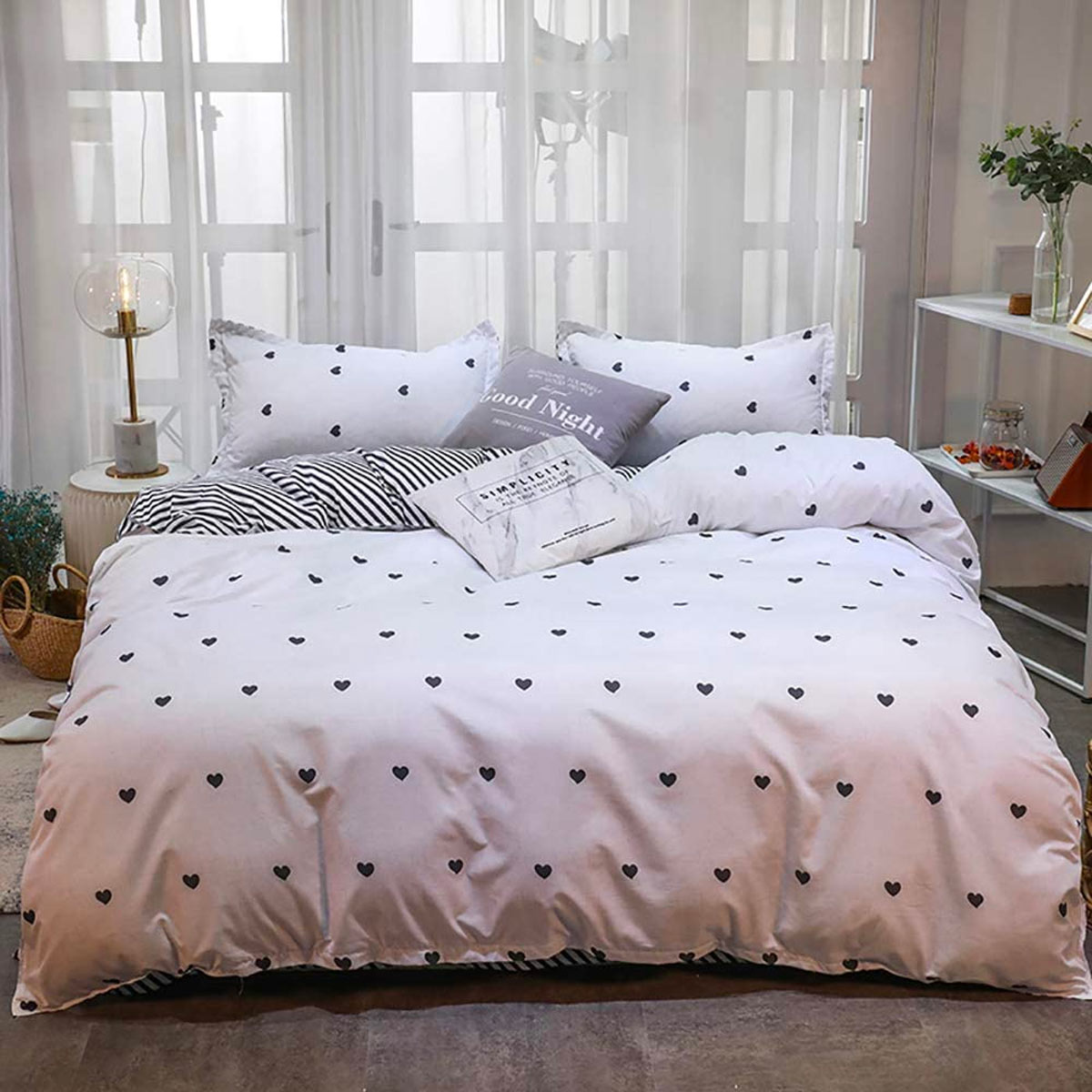 Lo stile shabby chic è caratterizzato dalla presenza di molte decorazioni a forma di cuore. Che ne pensate di questa biancheria a cuori black and white?