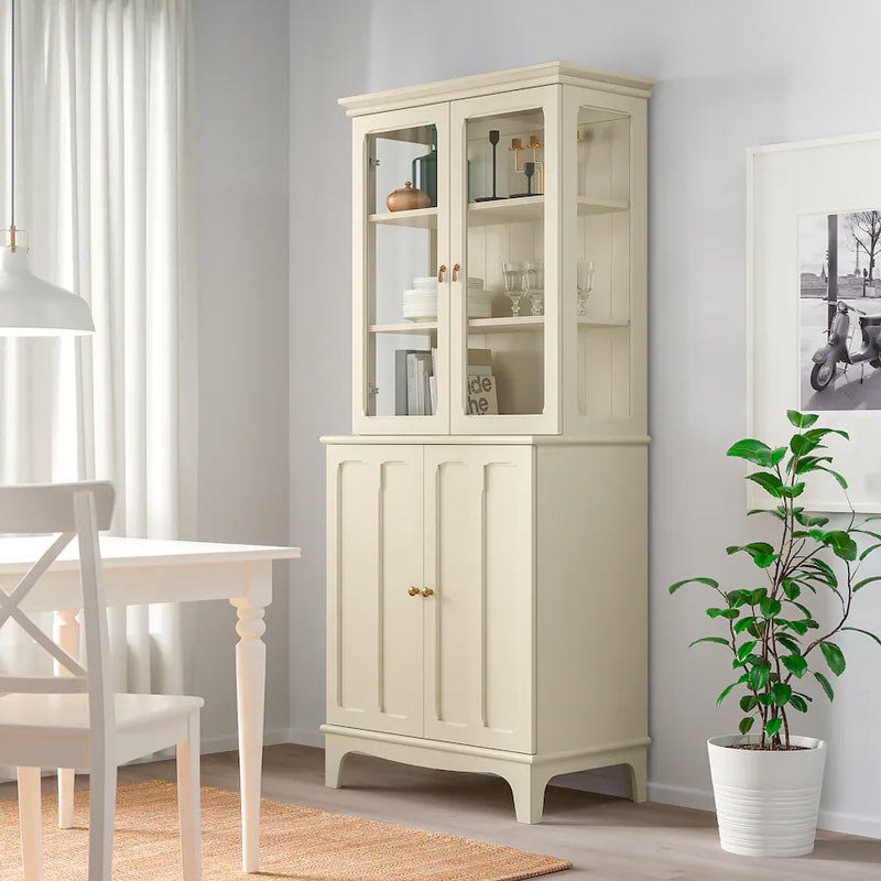 Anche Ikea propone differenti dispense e vetrine in stile shabby chic. Qui vediamo una proposta che abbina il colore bianco e il colore legno naturale in perfetto stile shabby. Le ante in vetro lasciano intravedere l’interno realizzato sempre in color legno. Davvero originale.