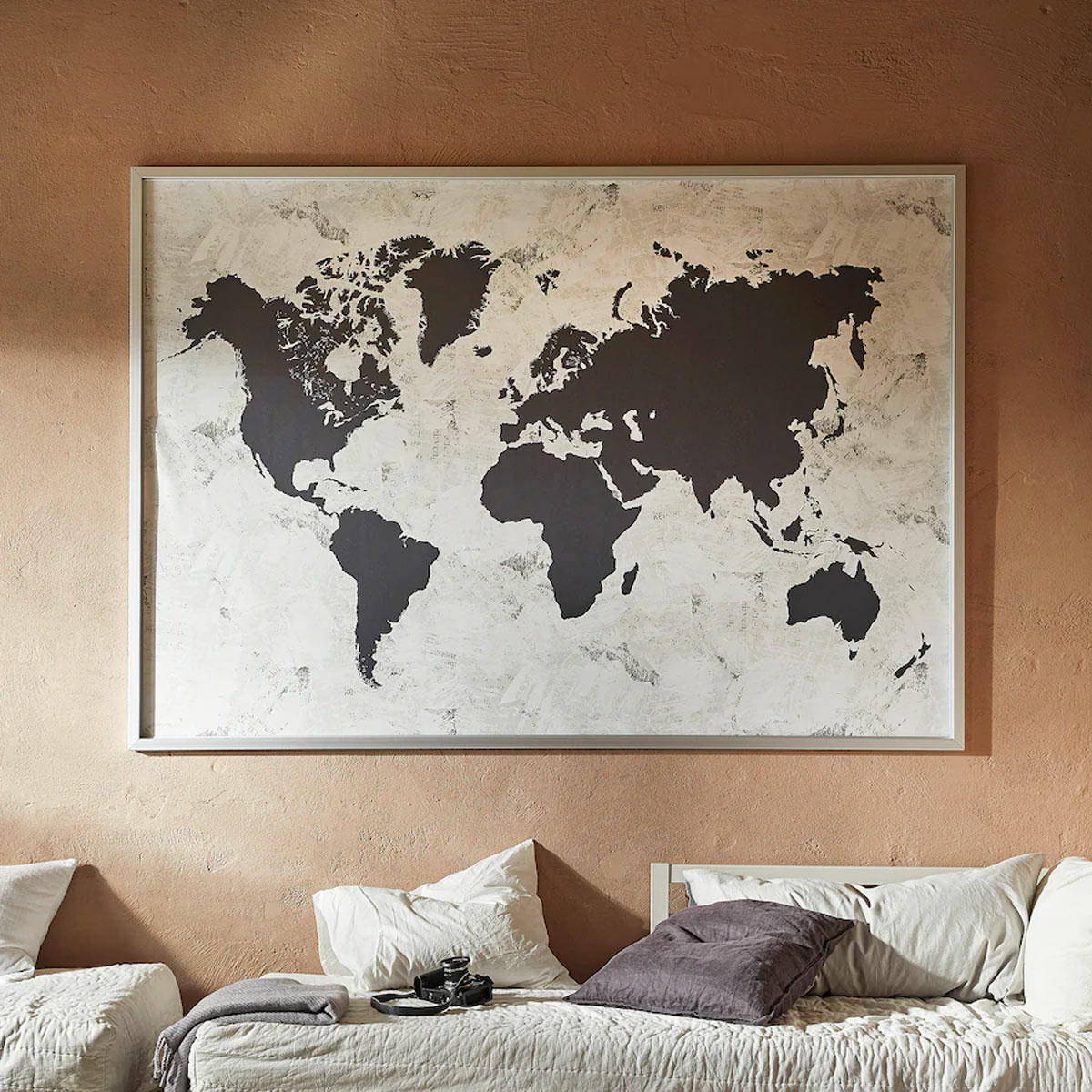 Siete dei gran viaggiatori e amate prendere il volo appena c’è l’occasione? Allora questa è la decorazione per la parete dietro il divano che fa per voi. Potete anche aggiungere dei segnaposto mano a mano che visitate il mondo, tenendo così traccia di tutti i luoghi in cui siete stati. Non vi mancheranno di certo gli argomenti per intrattenere gli ospiti.