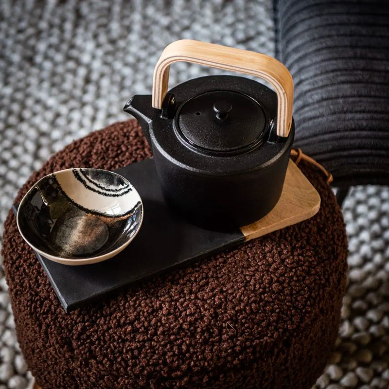 La teiera in ghisa nera mantiene sempre al caldo il tè. Il manico in legno naturale è il suo elemento distintivo che la rende davvero unica.