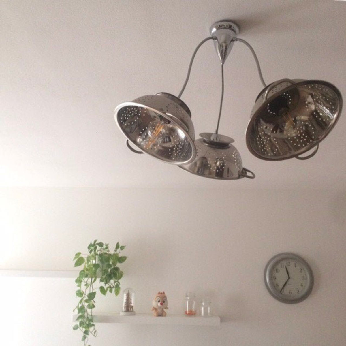 Se invece prediligiamo il design moderno,  grazie ad una struttura cromata, tre colapasta possono diventare un lampadario a tre luci!