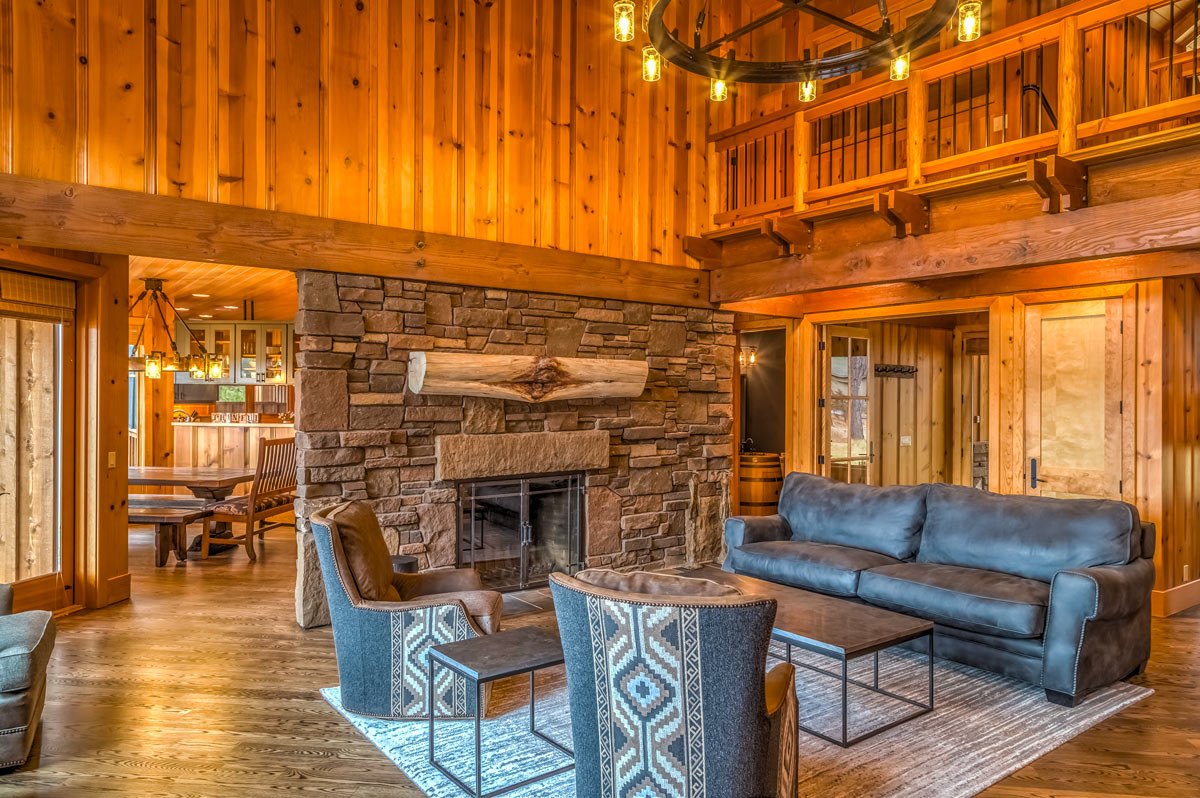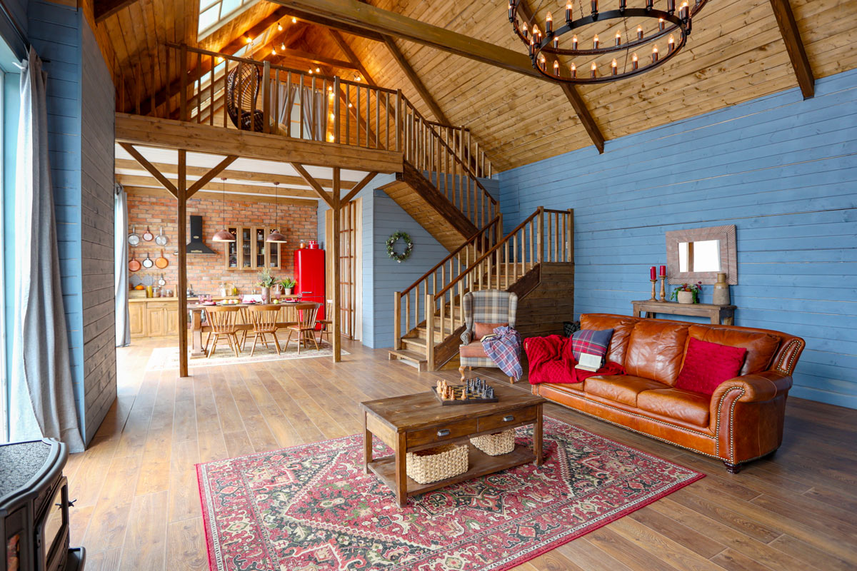 Ecco il tipico stile rustico, quello delle case di montagna. Il calore avvolgente del legno, la pelle del divano, le travi e i mattoni sulle pareti. Ogni cosa parla la lingua della natura e l’atmosfera è viva e accogliente.