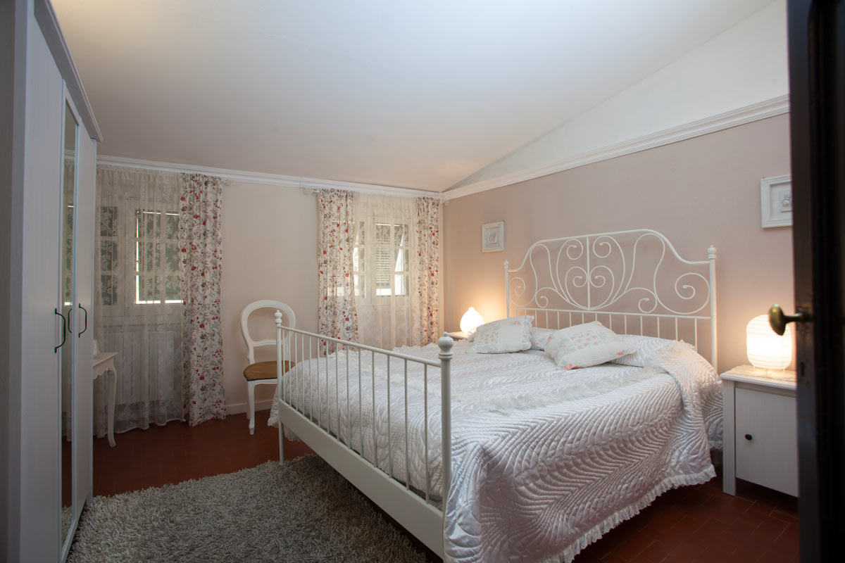 Per arredare una camera in stile shabby, oltre al letto in ferro battuto non possono mancare lenzuola con volant, pizzi, trapunte e boutis e moltissimi cuscini.