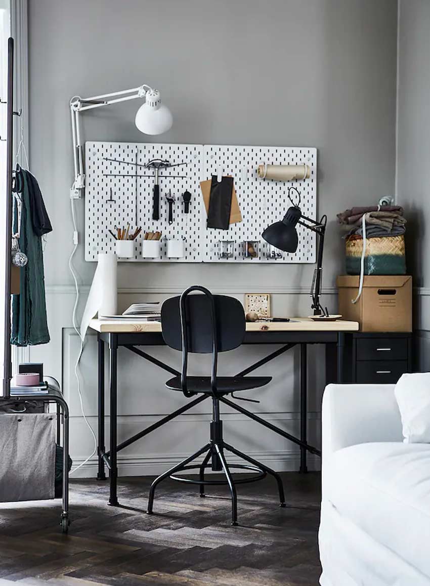 Non dimenticatevi che potete arricchire l’angolo studio grazie agli accessori IKEA come, ad esempio, il pannello portaoggetti SKÅDIS.