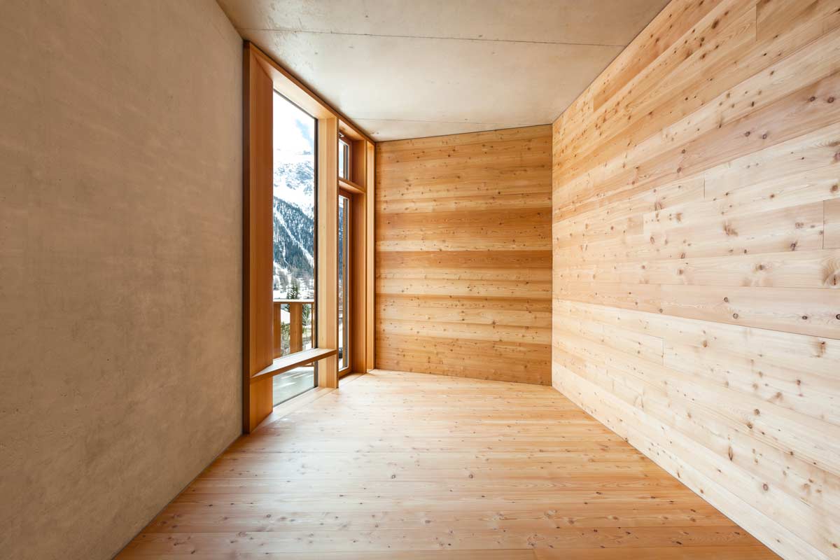 Un altro spunto che vorremmo offrirvi è la soluzione architettonica nella foto. Invece che la classica perlinatura color miele disposta in senso verticale, in questo chalet hanno trovato il modo di innovare mantenendo il rivestimento in legno.