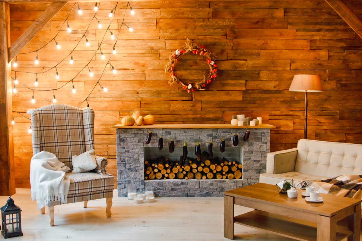 E se il camino non c’è? Nessun problema, per creare atmosfera basta predisporre una struttura (in questo caso si è optato per la pietra) e collocarvi candele o tronchetti di legna. Inoltre chi ha detto che le catene di lucette debbano essere usate solo a Natale?