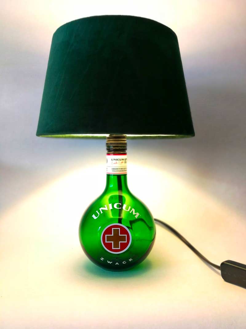 Dato che le bottiglie degli amari e dei superalcolici possiedono forme e colorazioni molto differenti è facile realizzare degli abat-jour originali e personalizzati a seconda della nostra camera da letto. In questo caso è stata utilizzata una bottiglia verde e un paralume nero.