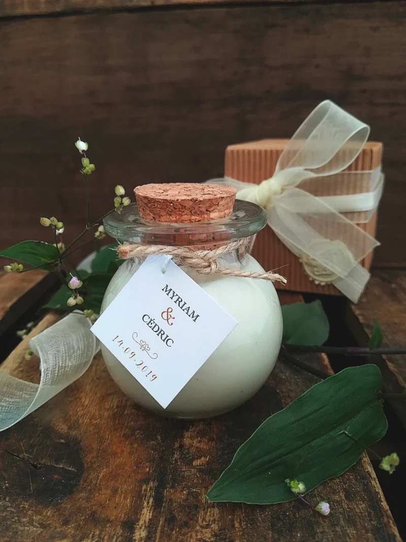 Un elegante porta candela realizzato con un barattolino di vetro ricoperto da un tappo di sughero. Una bomboniera unica per un matrimonio!