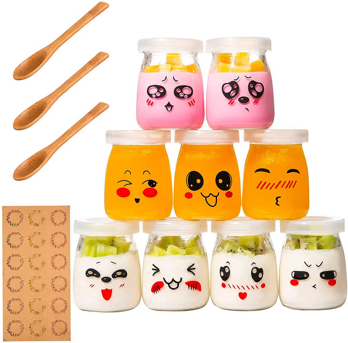 Sono l’ideale come idee bomboniere per un primo compleanno o per un battesimo. Piccoli vasetti contenenti yogurt o marmellata.
