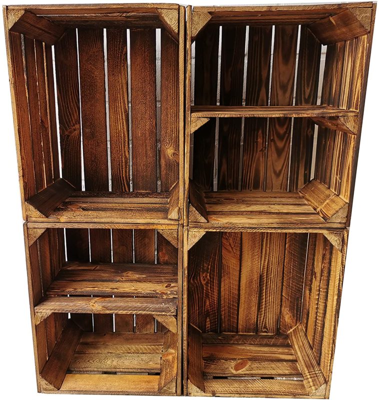 Libreria ispirata da cassette di legno