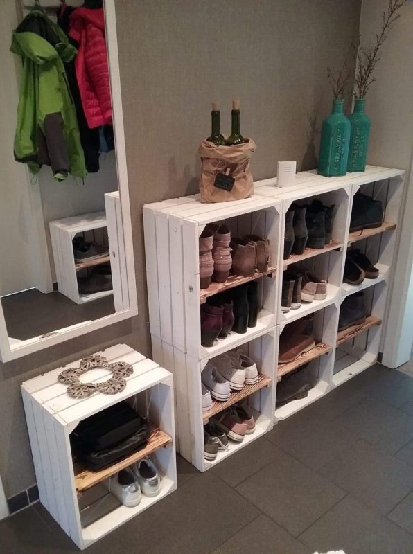Vi basterà prendere delle cassette della frutta o della verdura, pitturarle di bianco e incollarle fra di loro. Darete vita a una bellissima libreria o, se preferite, a una scarpiera!