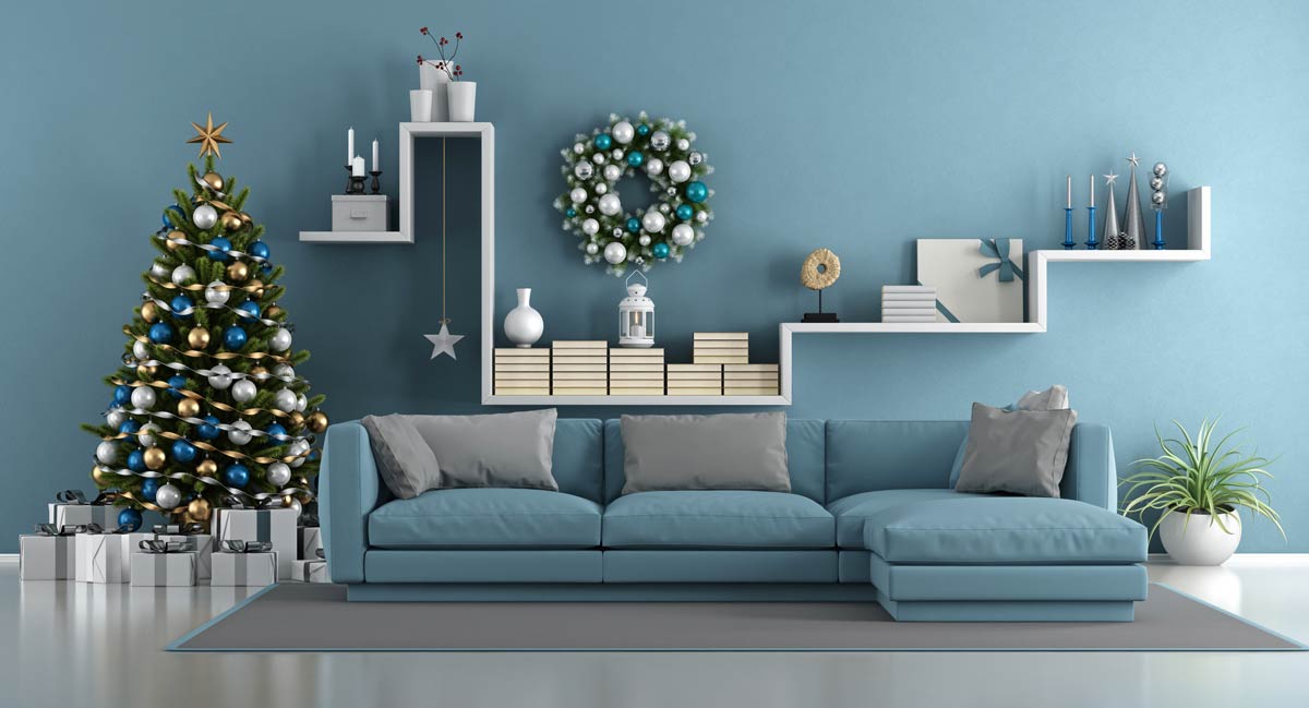 Arredare il soggiorno con le decorazioni natalizie.