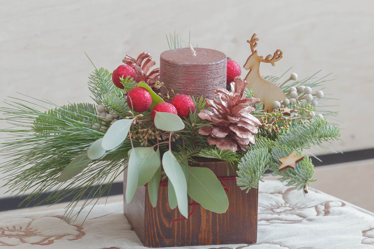 Quest’anno anziché acquistare un centrotavola già confezionato, procuratevi palline, pigne naturali o dipinte, rami di conifere, pino, eucalipto, candele, bacche e nastrini. Avrete tutto ciò che vi serve per creare un centrotavola fai da te natalizio e originale.