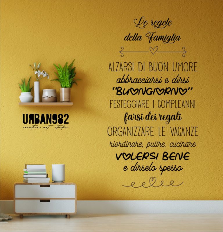 Un’idea originale per riportare su un muro le regole che vigono in una casa? Scegliere un adesivo che le riporti! Eccone un esempio, che sarà di sicuro un buon metodo per riuscire a seguirle senza fingere di averle dimenticate!