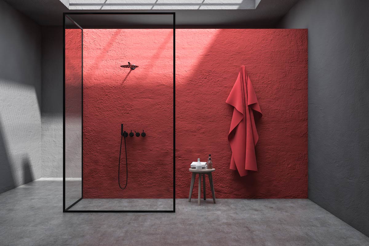 Le gradazioni del colore rosso sono davvero infinite e ben si prestano ai rivestimenti delle sale da bagno. Il rosso è indicato anche per un’area SPA all’interno del bagno come ad esempio la zona della cabina della doccia.