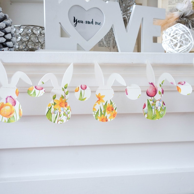 Basta procurarsi della carta decorata con motivi floreali, sulla quale ritagliare la forma di tanti coniglietti, da appendere, poi, gli uni accanto agli altri, grazie ad un filo trasparente, fino a formare una bella ghirlanda. Questa potete posizionarla sul camino, su una parete o anche sulla porta di casa. La Pasqua è decisamente più bella se decorata con il “fai da te” del riciclo creativo.