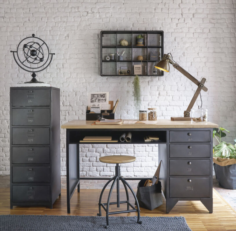 Non è detto che in uno studio non possano esserci sgabelli. Ne cercate uno adatto? Guardate un po’ questo in metallo nero e legno di pino riciclato!