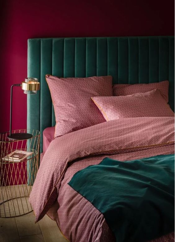 Se amate i colori scuri, potreste optare per una camera da letto in bordeaux e blu scuro o petrolio. Si tratta di un abbinamento perfetto per le camere maschili, ma non solo.
