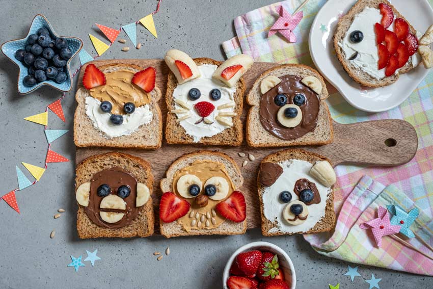 I più piccoli adorano gli animali: approfittatene, per realizzare sandwich che raffigurino musetti di gatti, volpi, orsetti, cani e altre bestiole. Potrete optare per ingredienti salati o dolci, per frutta, formaggio cremoso o verdure!