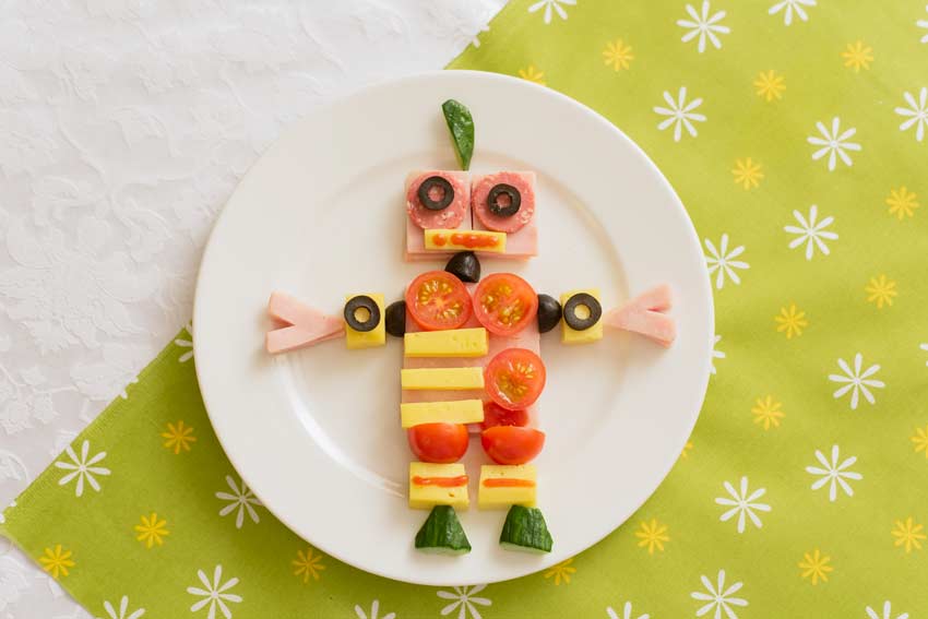 Vostro figlio è patito di robot? Potrete riprodurne uno con il cibo. Per il bimbo spazzolare il piatto significherà rubare la forza e i poteri del robot attraverso la bocca!