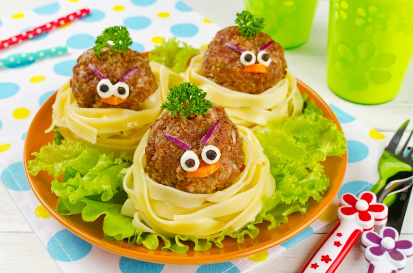 Spaghetti con polpette a forma di pulcino