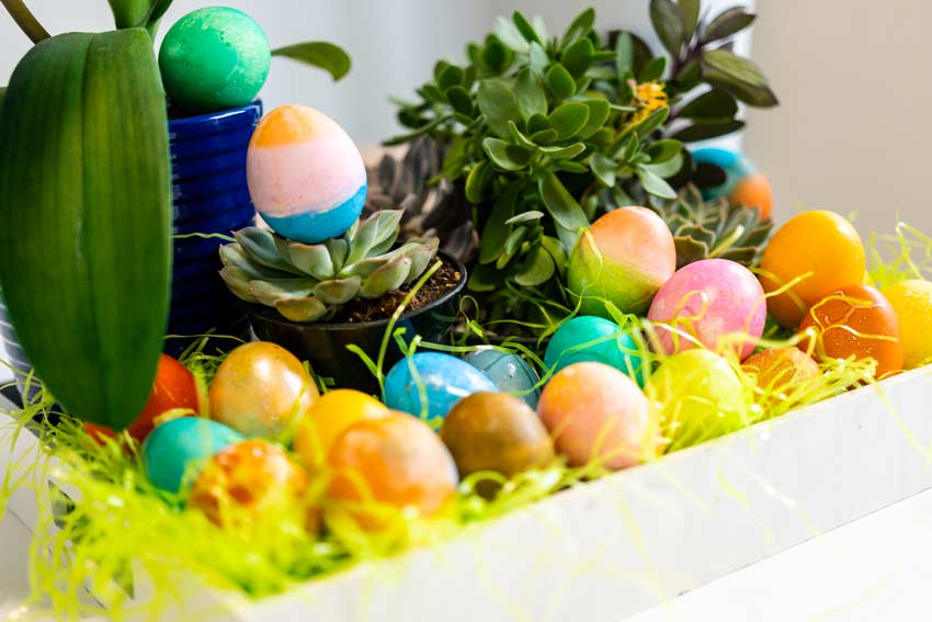 Prendete un cesto di vimini e riempitelo di raffia e poi ovetti colorati, magari anche quelli fatti di vostri bambini come regalino scolastico. Aggiungete qualche fiore di stagione, per regalare un po’ più di colore e mettete poi il cesto in bella vista in cucina, la stanza dove si sta di più e nella quale si può godere delle belle decorazioni pasquali, proprio come in qualunque altro luogo di casa.