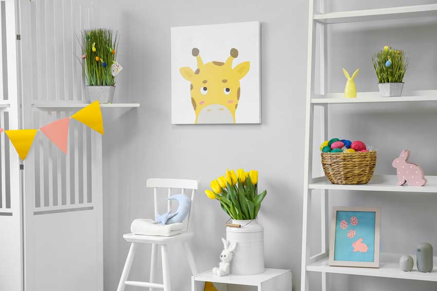 Perché non dare un tocco di atmosfera pasquale anche nella cameretta dei bambini? Ecco allora che basta prendere un bel cesto, anche di grandi dimensioni , e riempirlo di ovetti tutti colorati, magari dipingendo quelli di polistirolo.