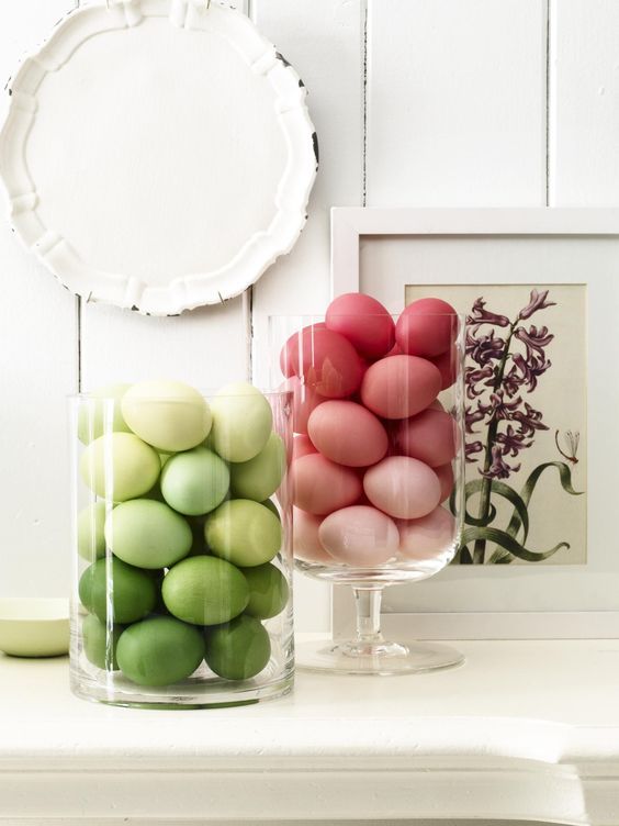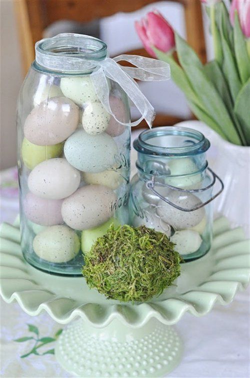 Chi ama l’arte del riciclo creativo e la semplicità apprezzerà certamente l’idea seguente. Barattoli e contenitori di vetro, una volta recuperati, possono diventare splendidi ornamenti pasquali. Basterà riempirli di uova colorate, il simbolo della Pasqua per eccellenza. Per un tocco di solennità e giocosità, potrete adagiare i vostri recipienti sopra un’alzata per dolci e frutta.