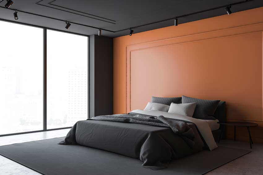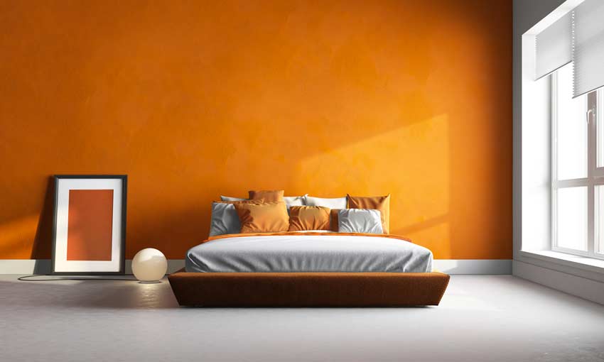 Pareti color arancione: camera da letto