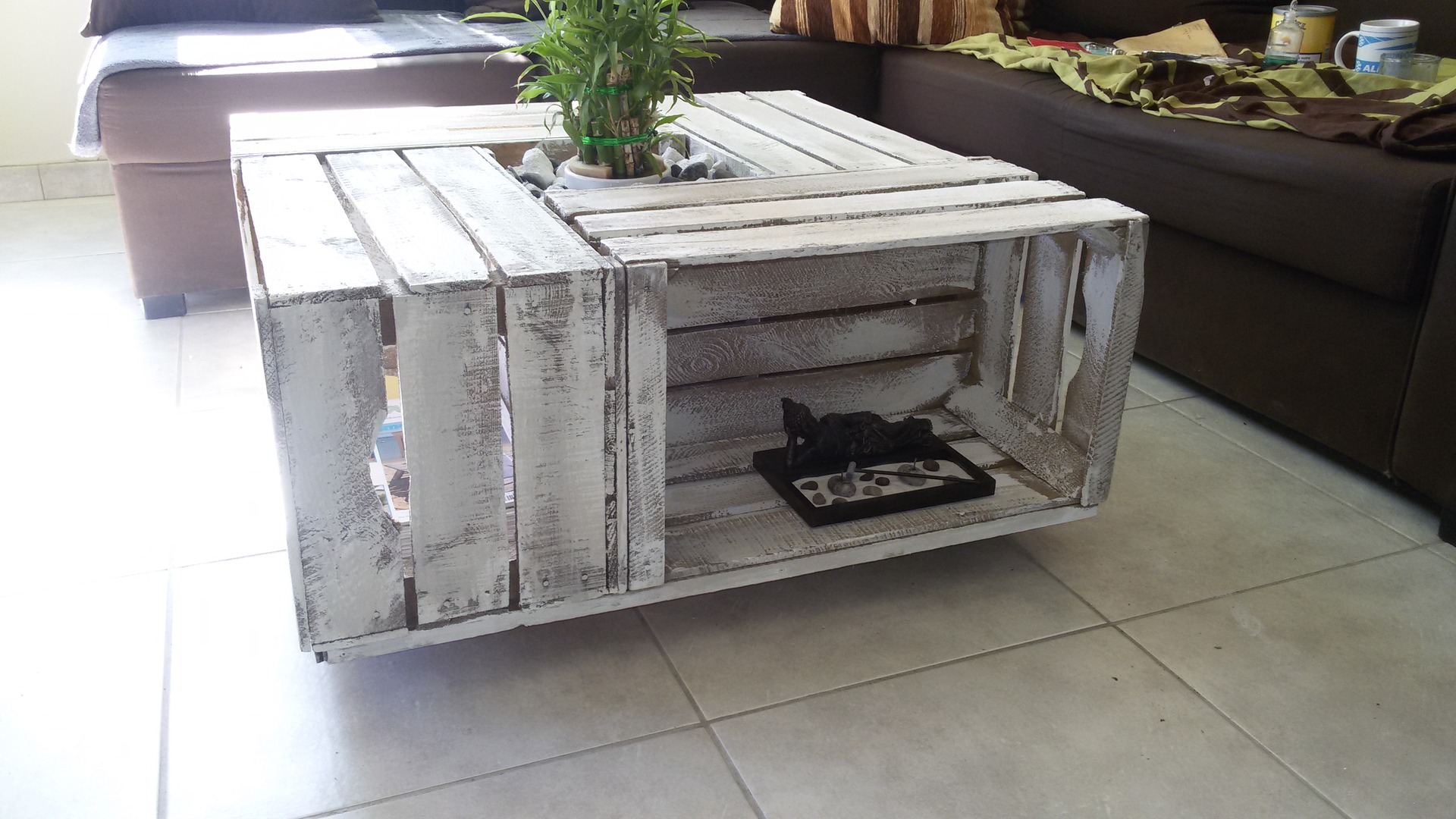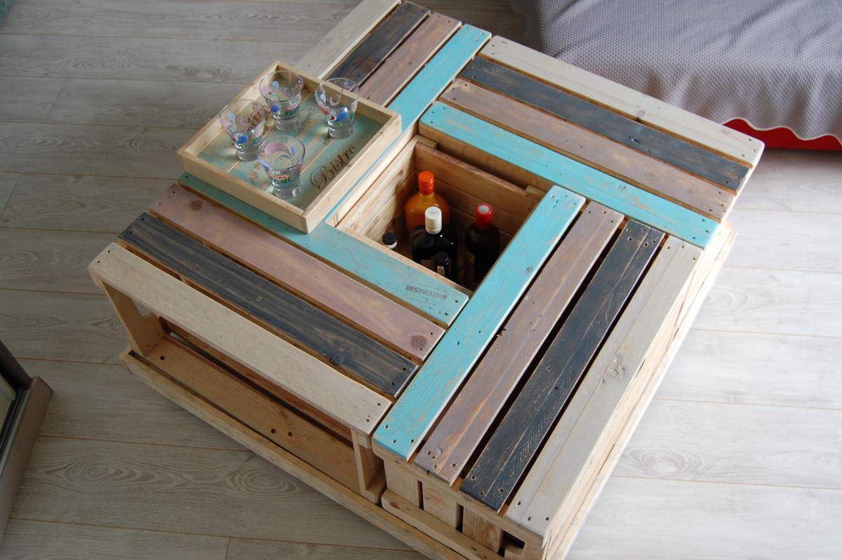 Tavolino basso con cassette di legno