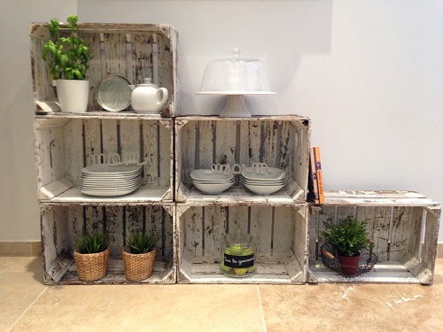 Se impilate le cassette di legno, una sopra l’altra, con un po’ di creatività potrete ottenere scaffali decorativi per il soggiorno unici. Una volta che avrete lavorato e verniciato il legno, potrete utilizzare le casse per appoggiare piante, servizi da cucina, cestini e via dicendo! Vedrete come con poco riuscirete ad abbellire un angolo del salotto altrimenti vuoto.