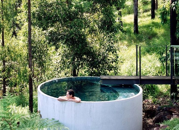 Perché non realizzare una piscina dalla forma circolare, riciclando un tubo di cemento? Una scelta bizzarra, senza dubbio, ma decisamente funzionale.