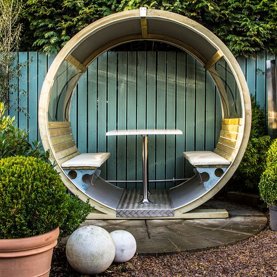 La particolare forma del tubo in calcestruzzo fa sì che possiate giocare con mobili di ogni tipo. È sorprendente come un oggetto così lontano dal design possa trasformarsi in arredi originali che sembrano progettati ad arte. Guardate, per esempio, come questo tubo si presti ad accogliere un set da giardino decisamente insolito.