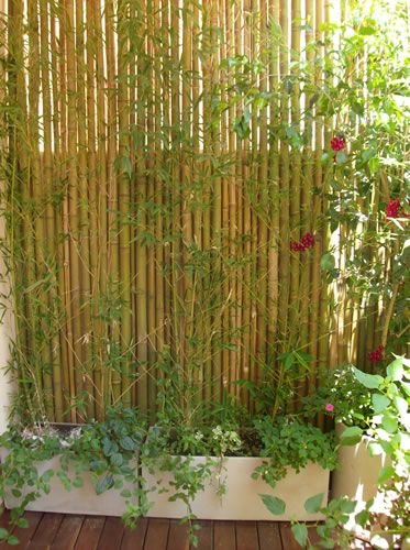 Ancora canne di bambù, che coprono la parte laterale di un balcone. Una soluzione decisamente funzionale quando questo spazio esterno sia molto esposto allo sguardo altrui, ad esempio in condominio o quando si tratti di un piano basso di un palazzo. Le canne schermano altresì uno spazio piccolo, favorendo una bella ombra nelle ore più soleggiate.