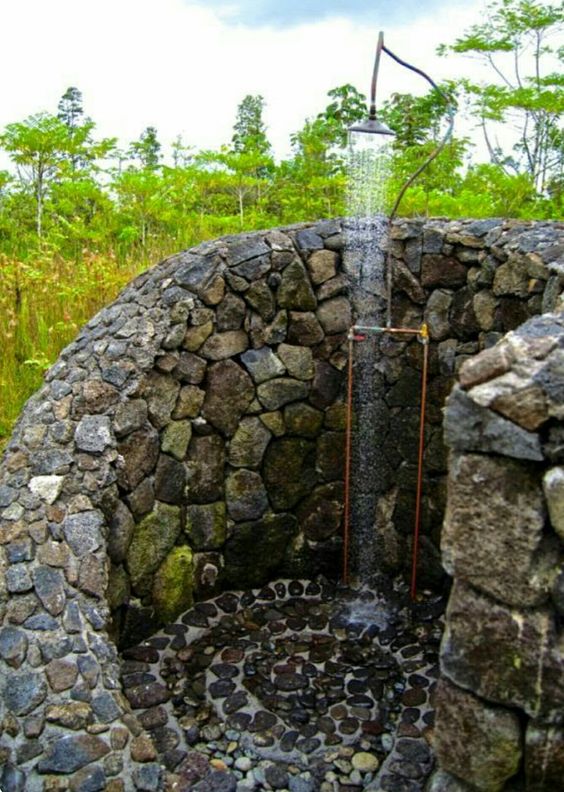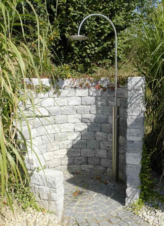 Gli amanti dello stile rustico apprezzeranno sicuramente la scelta della pietra o dei mattoni per realizzare la doccia in giardino dei loro sogni. Oltre a permettere maggiore privacy, costruire una doccia con questo materiale sarà vi assicurerà una resistenza a lungo termine. Non esiste materiale più resistente alle intemperie della pietra!