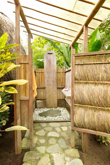 Volete realizzare un vero e proprio angolo relax e di benessere in cui rilassarvi e coccolarvi? Allora dovrete progettare una doccia da cabina, con tanto di canne di bambù e ghiaia decorativa sulla base della doccia. Meglio ancora se circondata da molte piante e fornita di acqua calda.
