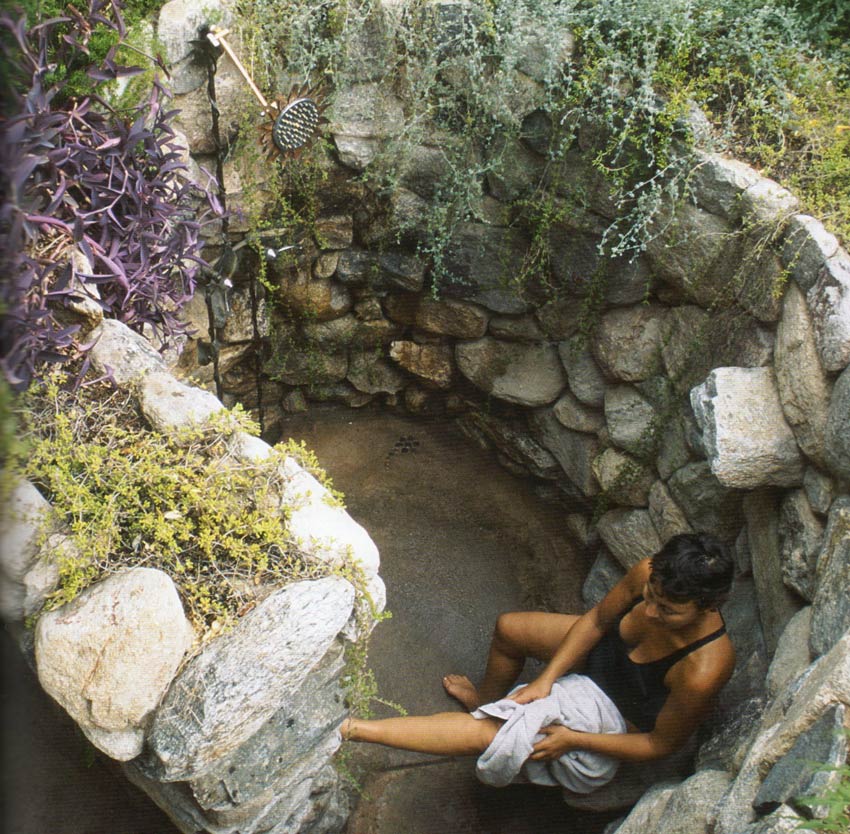 Volete riprodurre un mood esotico nel vostro spazio doccia da esterno? Allora dovrete indirizzarvi per un’alternativa con cabina interamente in pietra e rivestita di piante che amano i contesti umidi. Meglio ancora se con una seduta su cui rilassarsi dopo una bella rinfrescata.