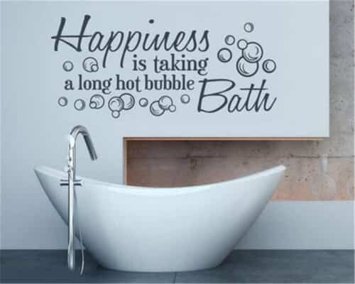 Un bagno moderno e informale può ospitare perfettamente stickers con frasi giocose, motivazionali o citazioni famose, sparpagliati in diversi angoli della stanza.