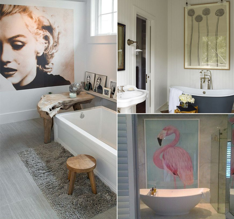 Chi l’ha detto che non si può decorare le mura del bagno con quadri, foto e stampe? Vedrete come con poco l’ambiente acquisirà più personalità e colore. Non è importante riempire la stanza di immagini. Bastano pochi, curati dipinti per ottenere un effetto piacevole.