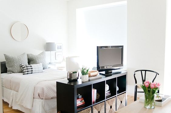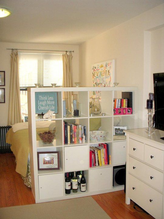 Ecco un’idea perfetta per chi vuole più spazio per mettere i libri. Una bella libreria che funge anche da parete separè.