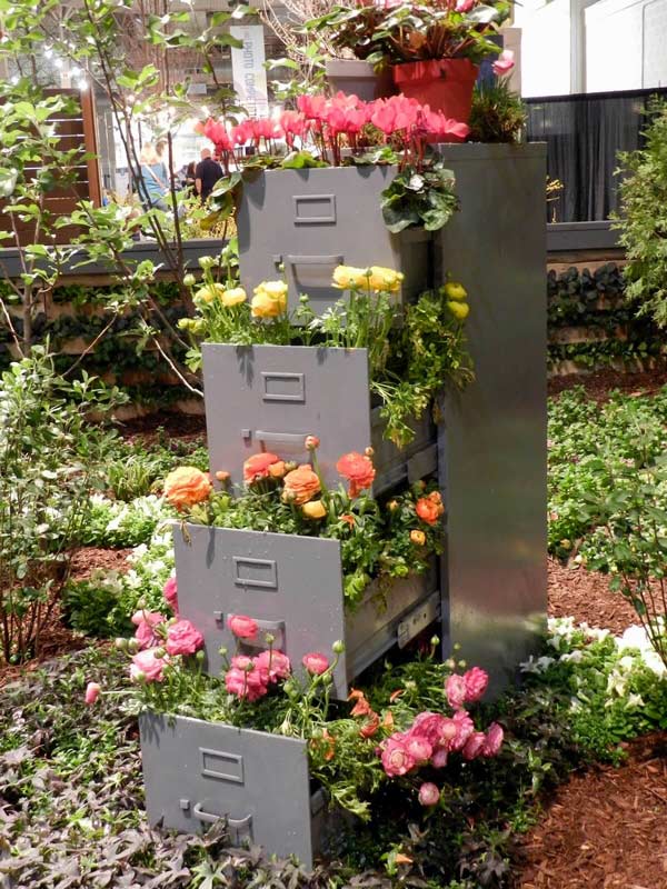 Avete un vecchio mobiletto che non utilizzate più e del quale non sapete che fare? Bene, sappiate che potete trasformarlo in uno dei più creativi giardini moderni fai da te. Vi basterà piantare fiori in ogni suo cassetto fino a creare una torre. Che ne dite?