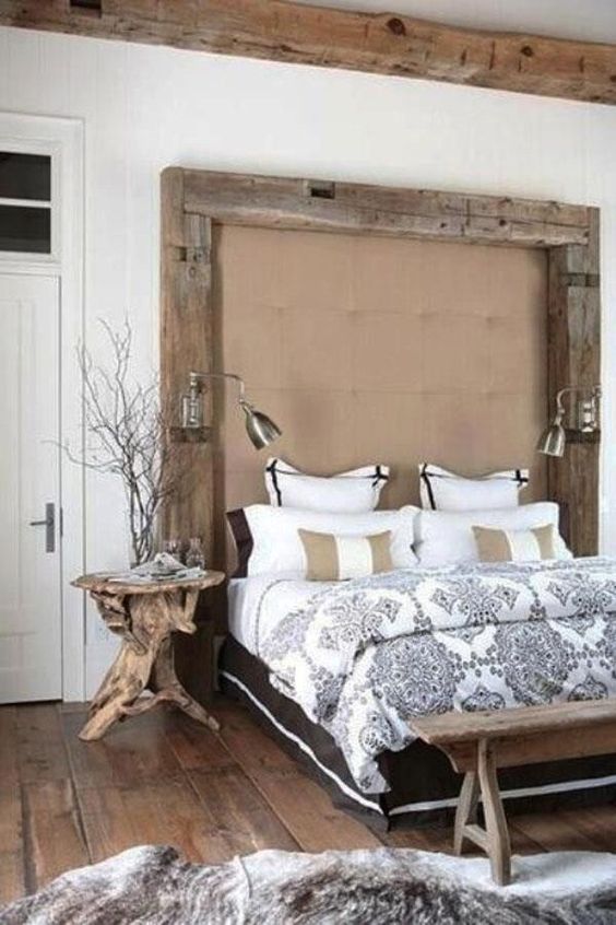 I più estrosi potranno dare libero sfogo alla loro creatività per realizzare una decorazione dietro il letto unica. Guardate, ad esempio, la resa estetica di una cornice in legno messa lì a racchiudere un rivestimento in tessuto. I colori caldi della terra, i dettagli delle lampade, il legno che mostra i segni del tempo. Tutto contribuisce a emanare calore e benessere.