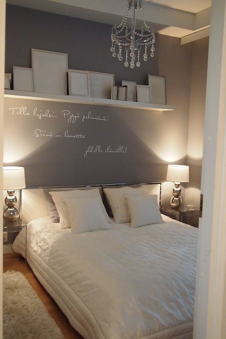 La pittura effetto lavagna sta impazzando in tutta Italia! Oltre a essere economica, facile da lavare, vi consente di decorare la parete con scritte e disegni personalizzati. Potrete aggiungere una pratica mensola bianca sopra il letto che diventerà un comodo punto di appoggio e creerà un gradevole contrasto di colori.