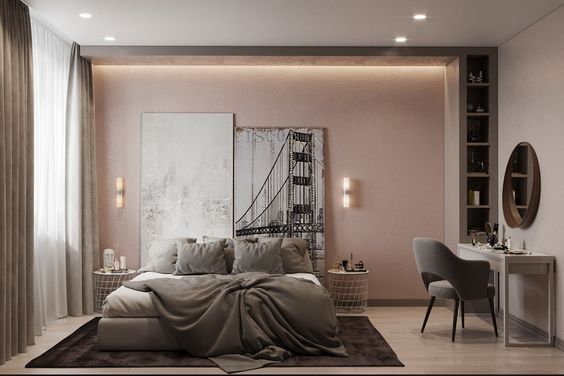 Ecco un’idea pratica e scenografica nello stesso tempo! Una parete in cartongesso che svolgerà due ruoli in uno. Da un lato diventerà un pratico punto di appoggio, al pari dei comodini. Dall’altro lato sarà un grazioso elemento decorativo dietro il letto, reso ancora più bello con la giusta carta da parati.