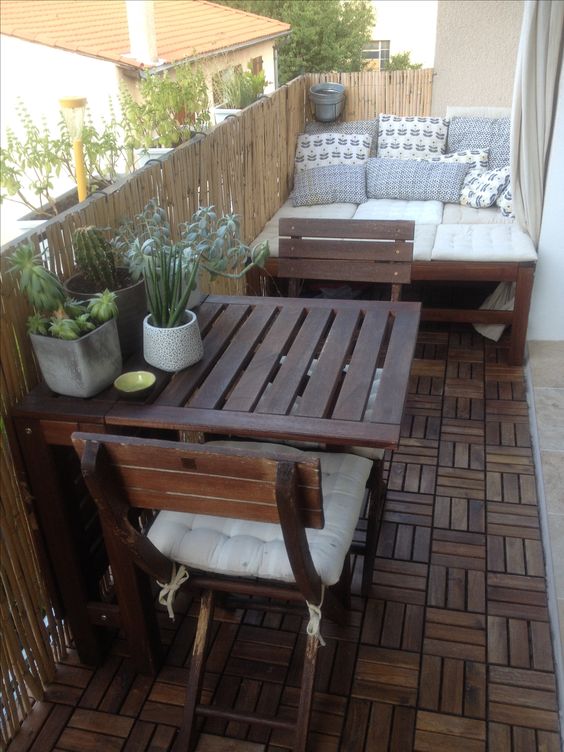 Come organizzare in un balcone piccolo sia lo spazio per un divano che quello per tavolo e sedie? Semplice, ottimizzando nel migliore dei modi lo spazio a disposizione. Date uno sguardo all’esempio che vi mostriamo.